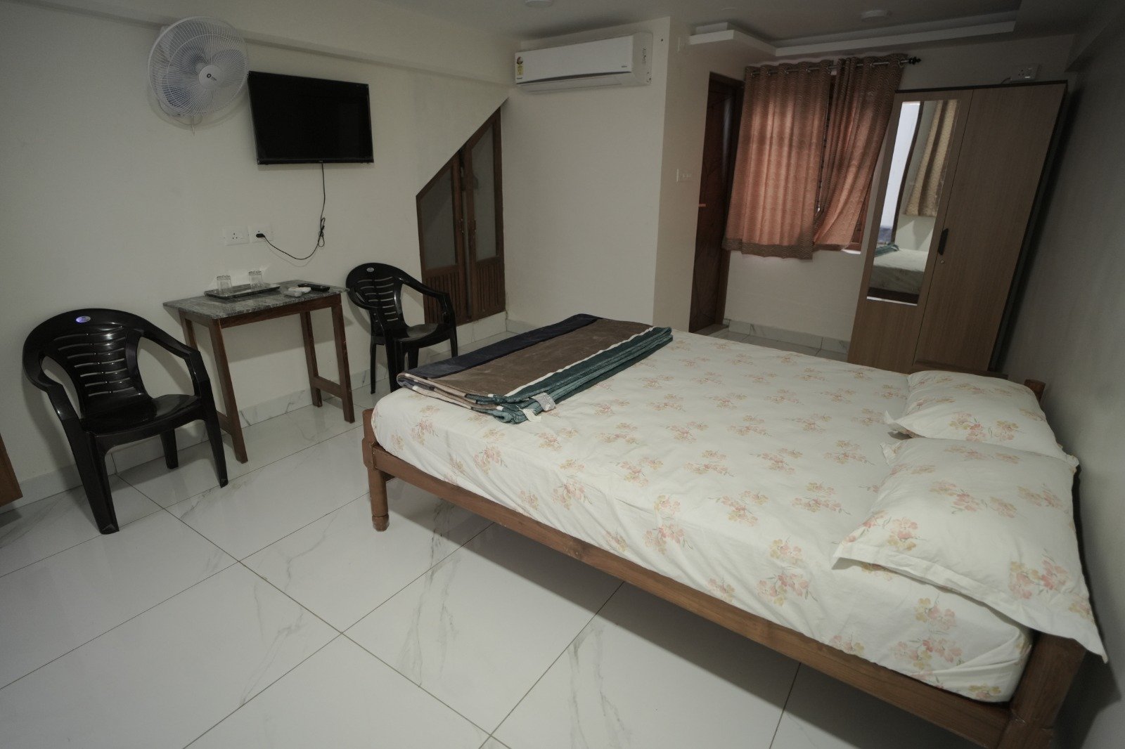 Ultimate space with wardrobe and A/c with garden view.